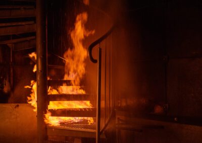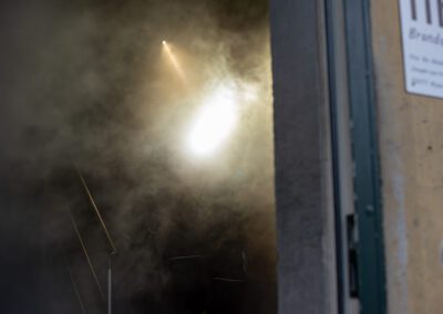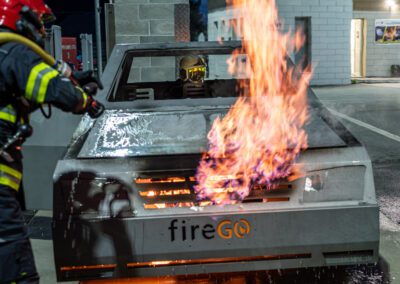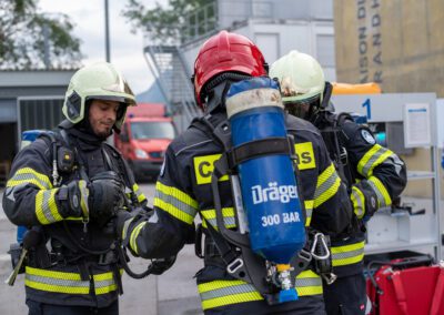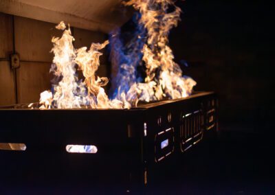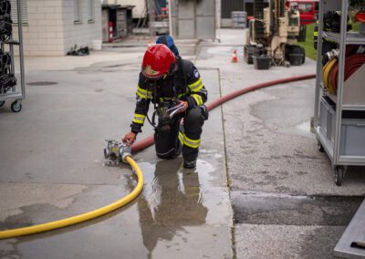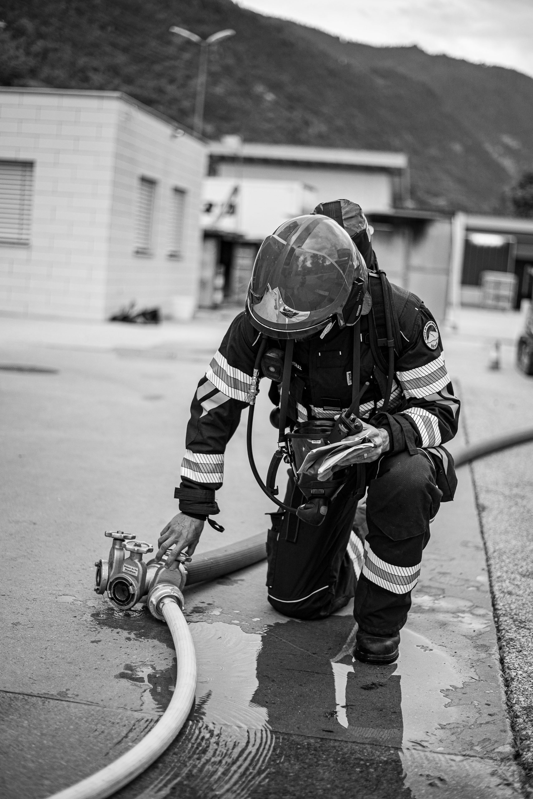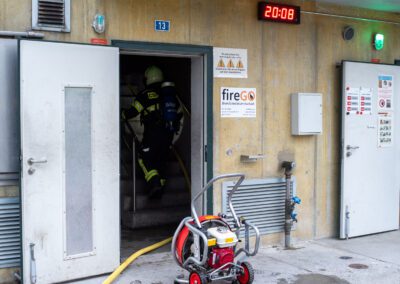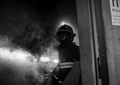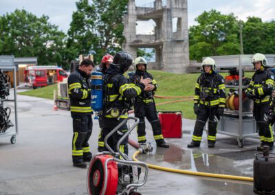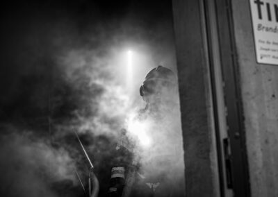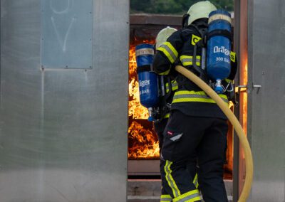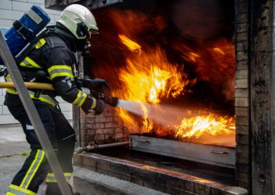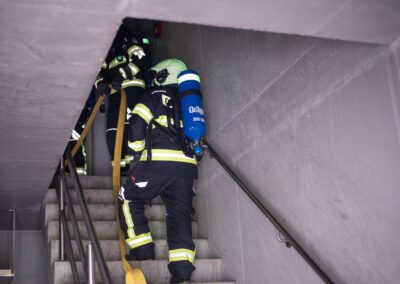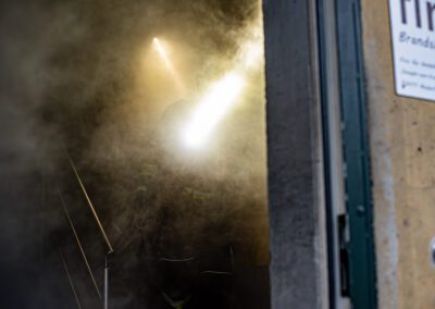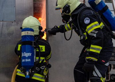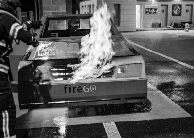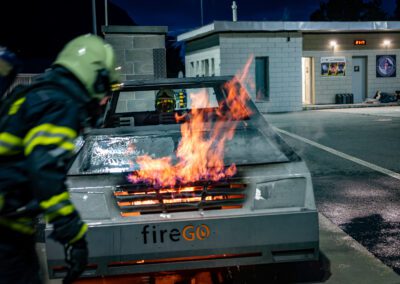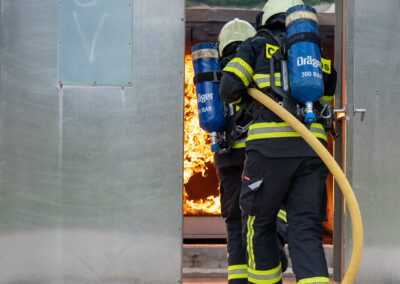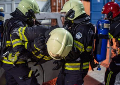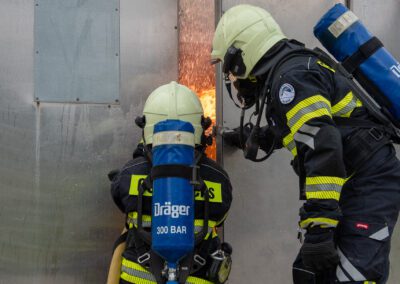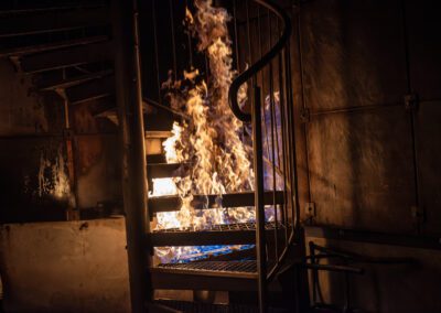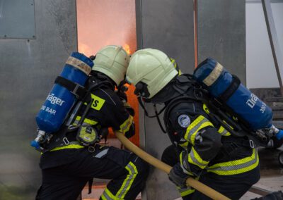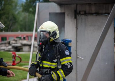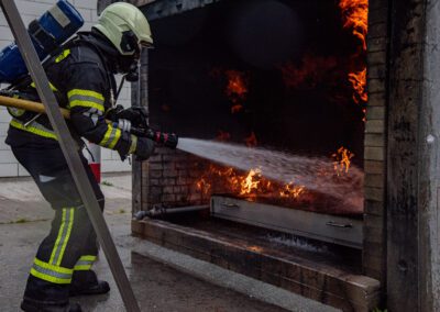 Séance de protection respiratoire réalisée à Grône : exercices centrés sur la coordination entre équipiers lors de l’ouverture de porte avec extinction immédiate, l’extinction de feu de voiture, ainsi que la gestion désenfumage dans cage d’escalier et local. Les participants ont aussi été confrontés à des pénétrations de pièces enfumées avec extinction ciblée. Ces mises en situation ont permis de renforcer les automatismes, la communication et les procédures de sécurité en environnement hostile.