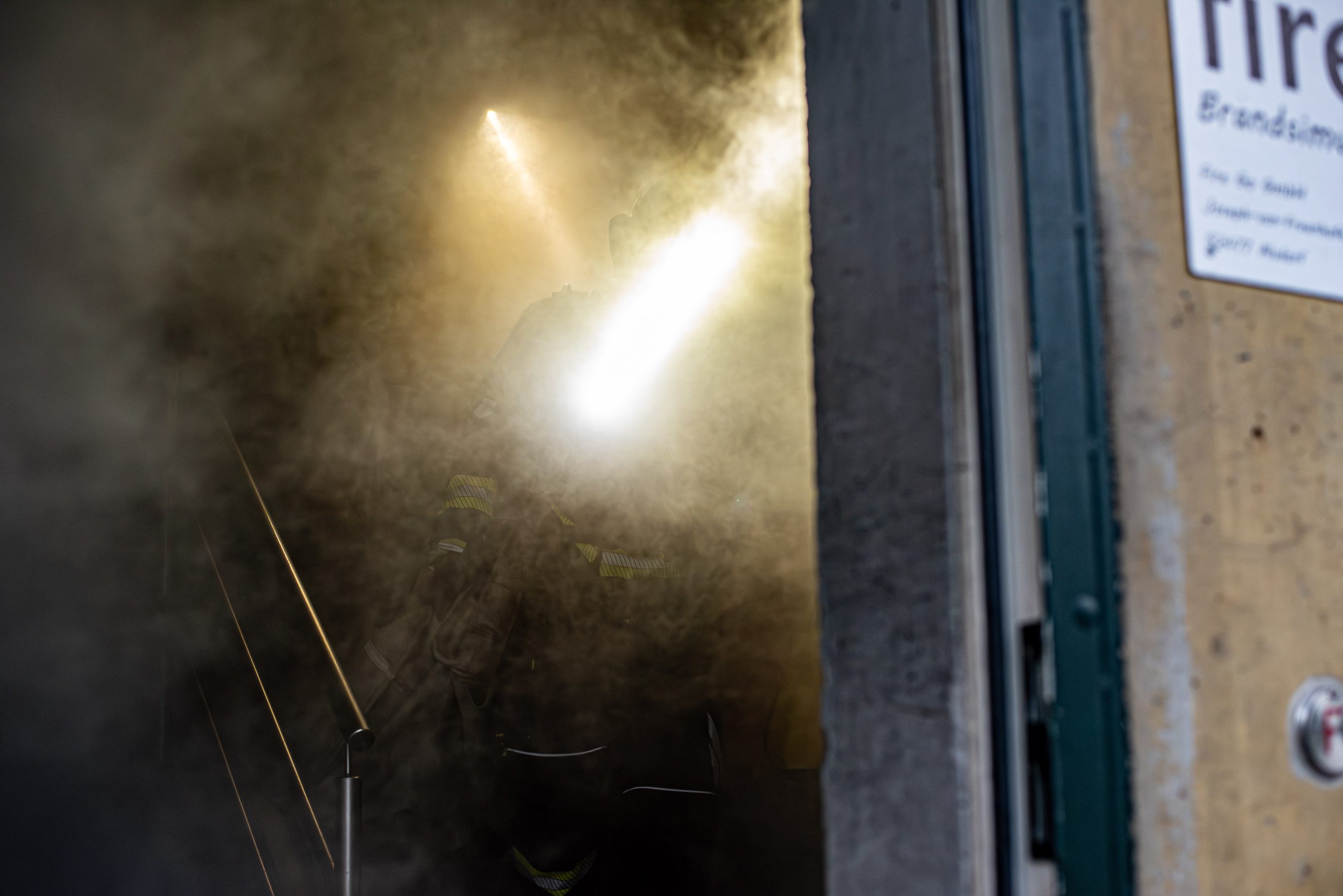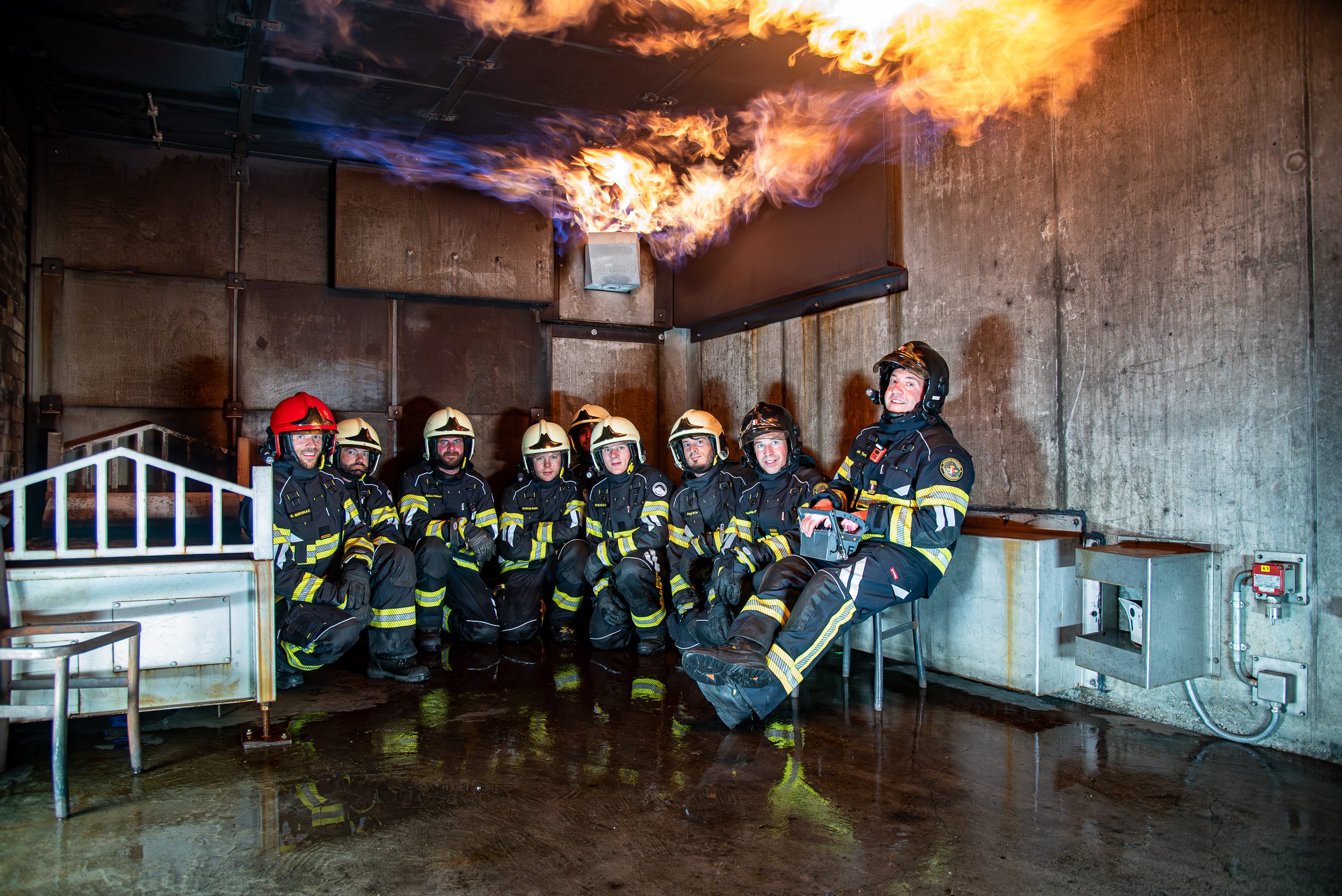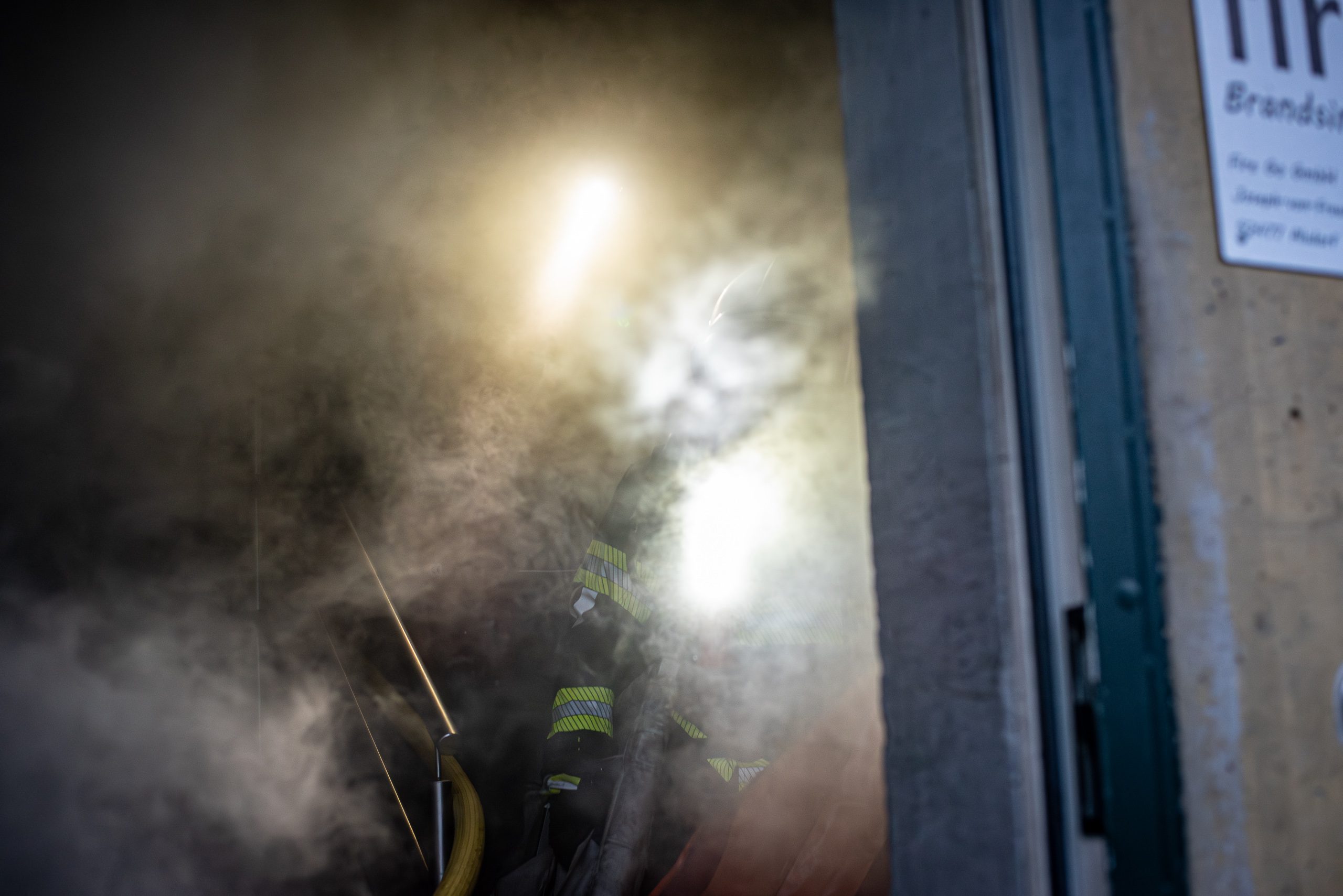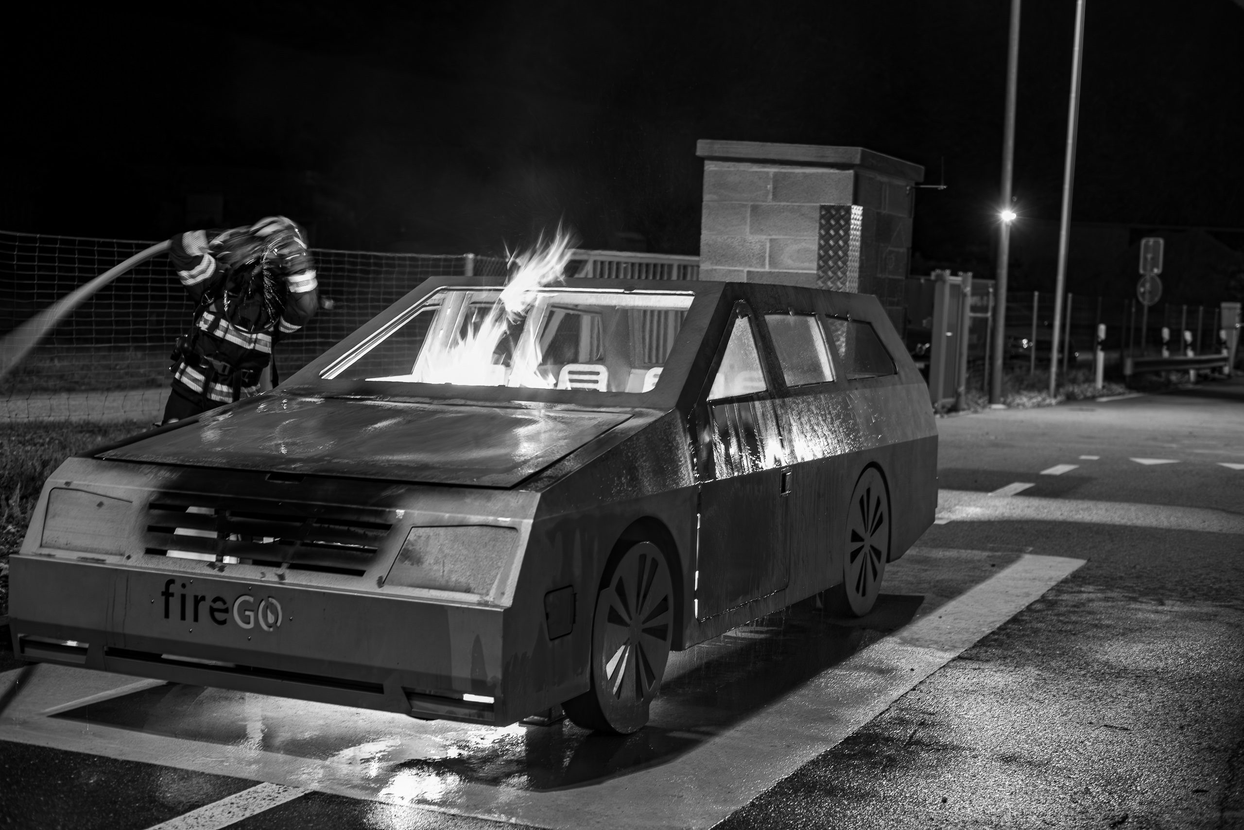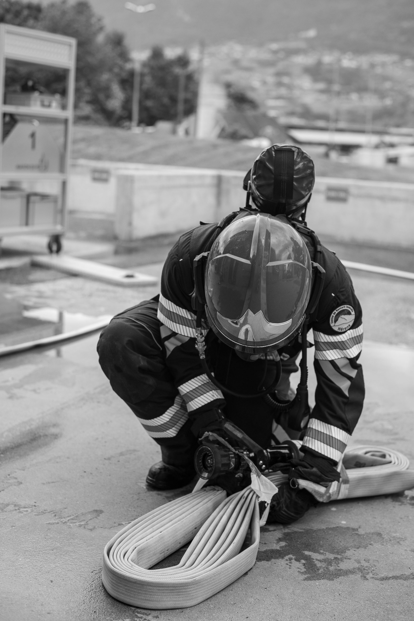 Lieu : Grône • Thèmes : coordination d'équipe, ouverture de porte avec extinction, feu de voiture, désenfumage cage/local, pénétration et extinction