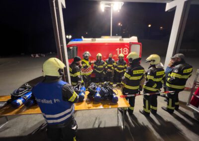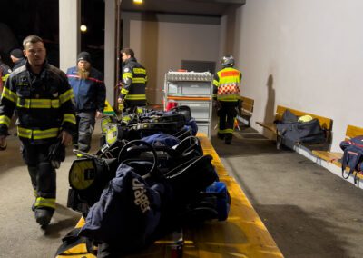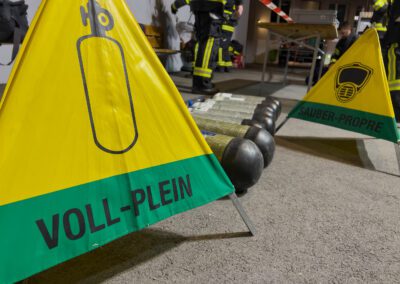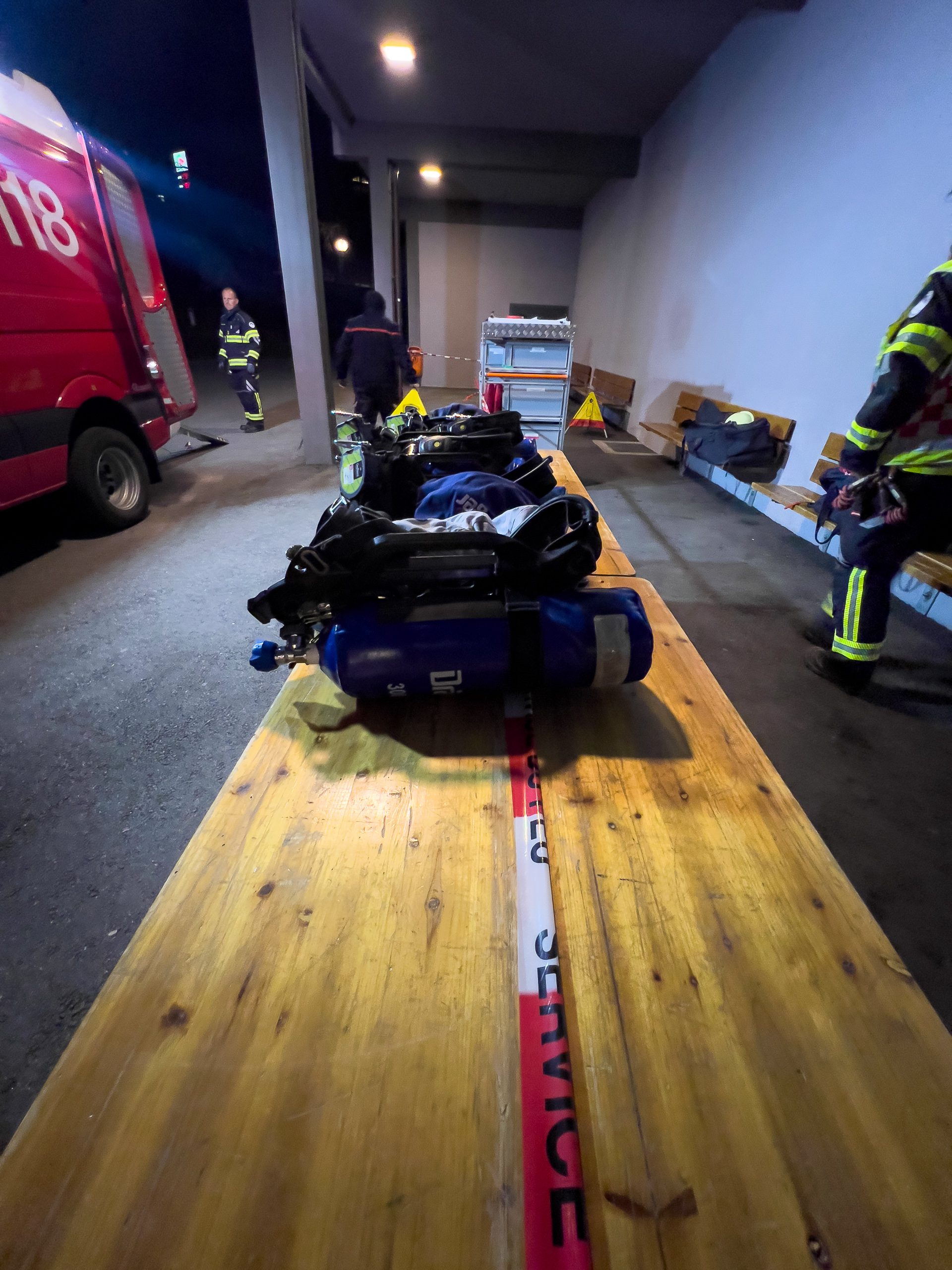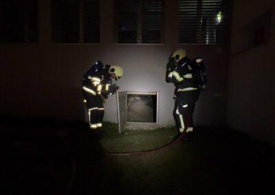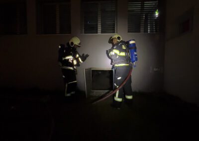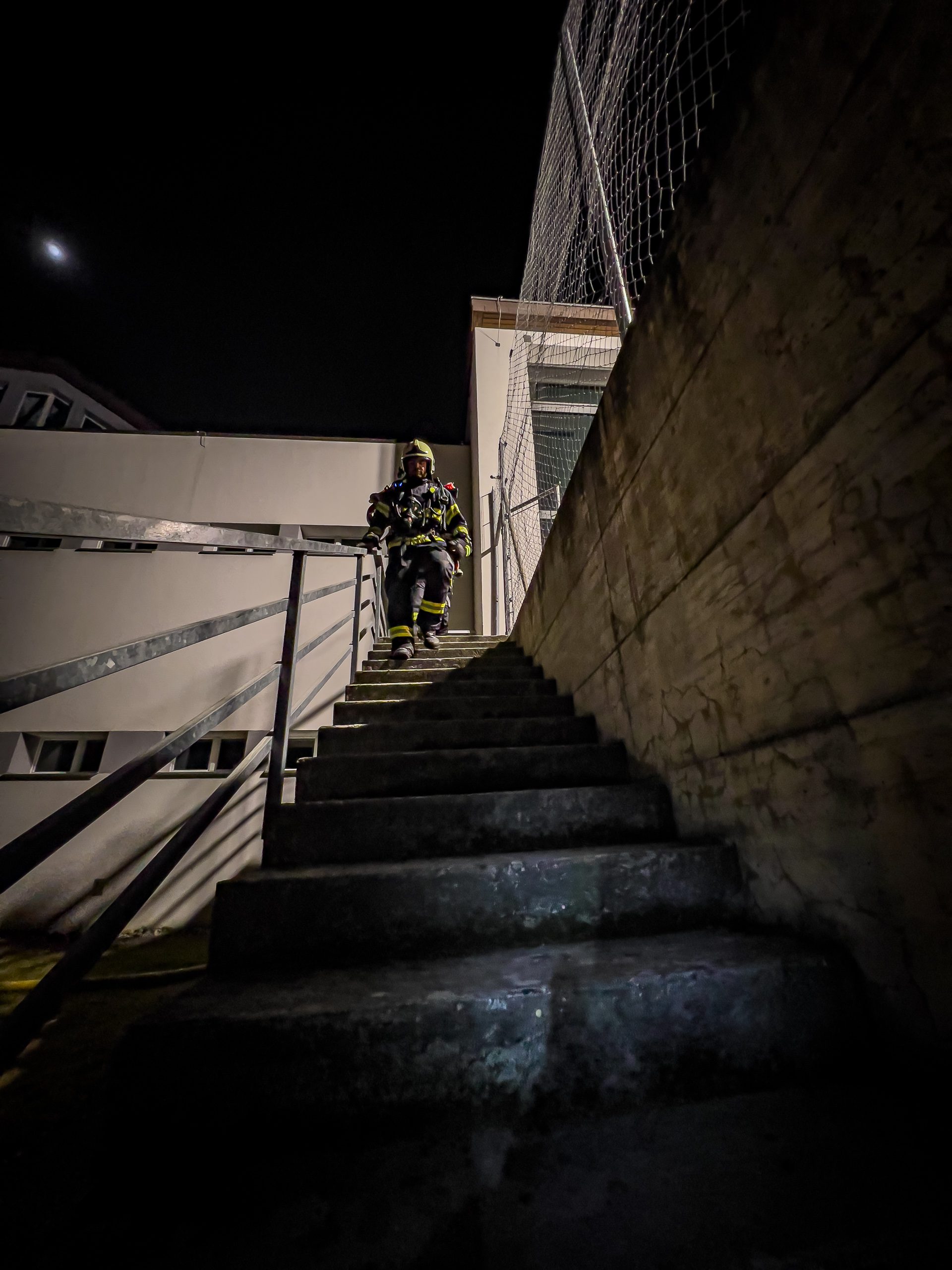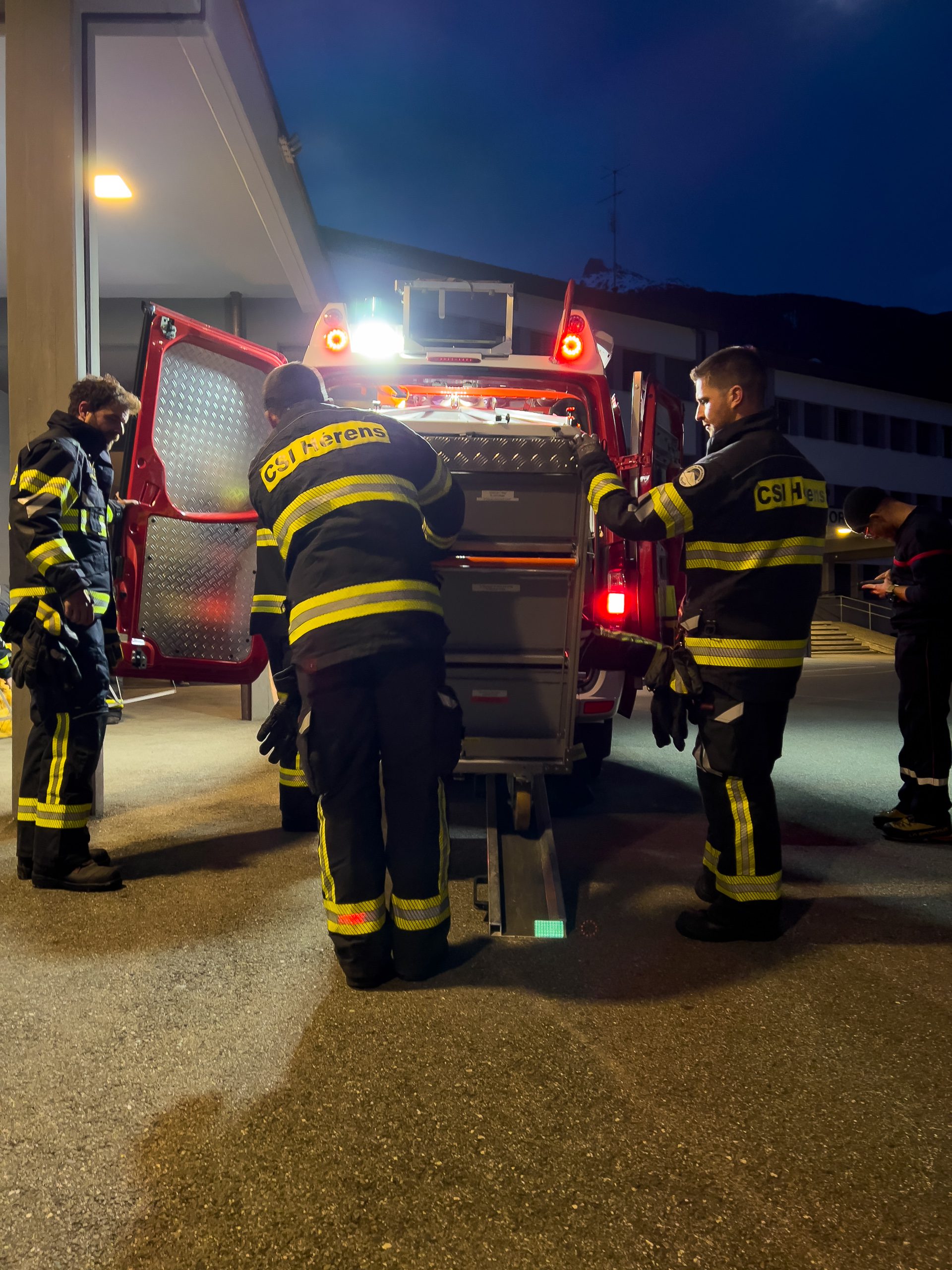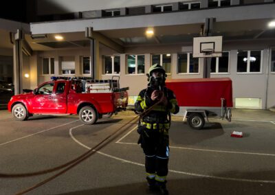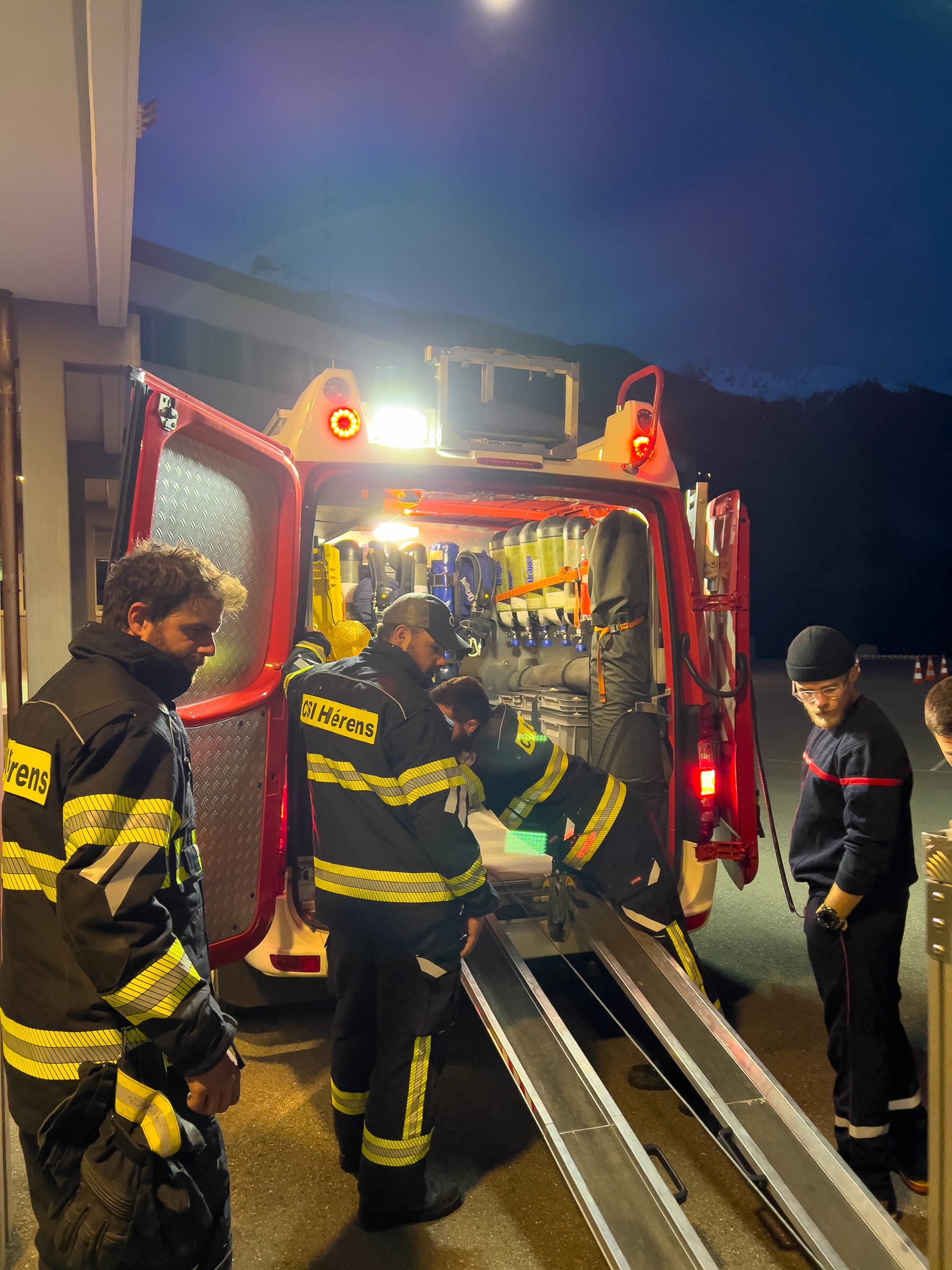 Séance de protection respiratoire réalisée au centre scolaire : reconnaissance et progression en binômes sur lignes guide, mise en place de repères, contrôle régulier des appareils respiratoires (ARI) et points de sécurité. Les équipes ont travaillé la communication radio avec le poste de conduite et la gestion des flux entre les binômes. Des mises en situation réalistes ont permis d’entraîner l’orientation, la recherche et la sortie sous faible visibilité, suivies d’un débriefing axé sécurité et bonnes pratiques et exercices de cardio et d'endurance.