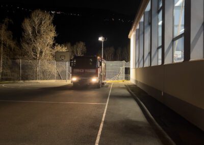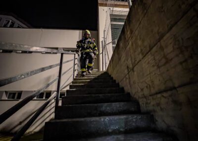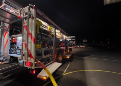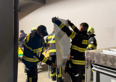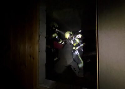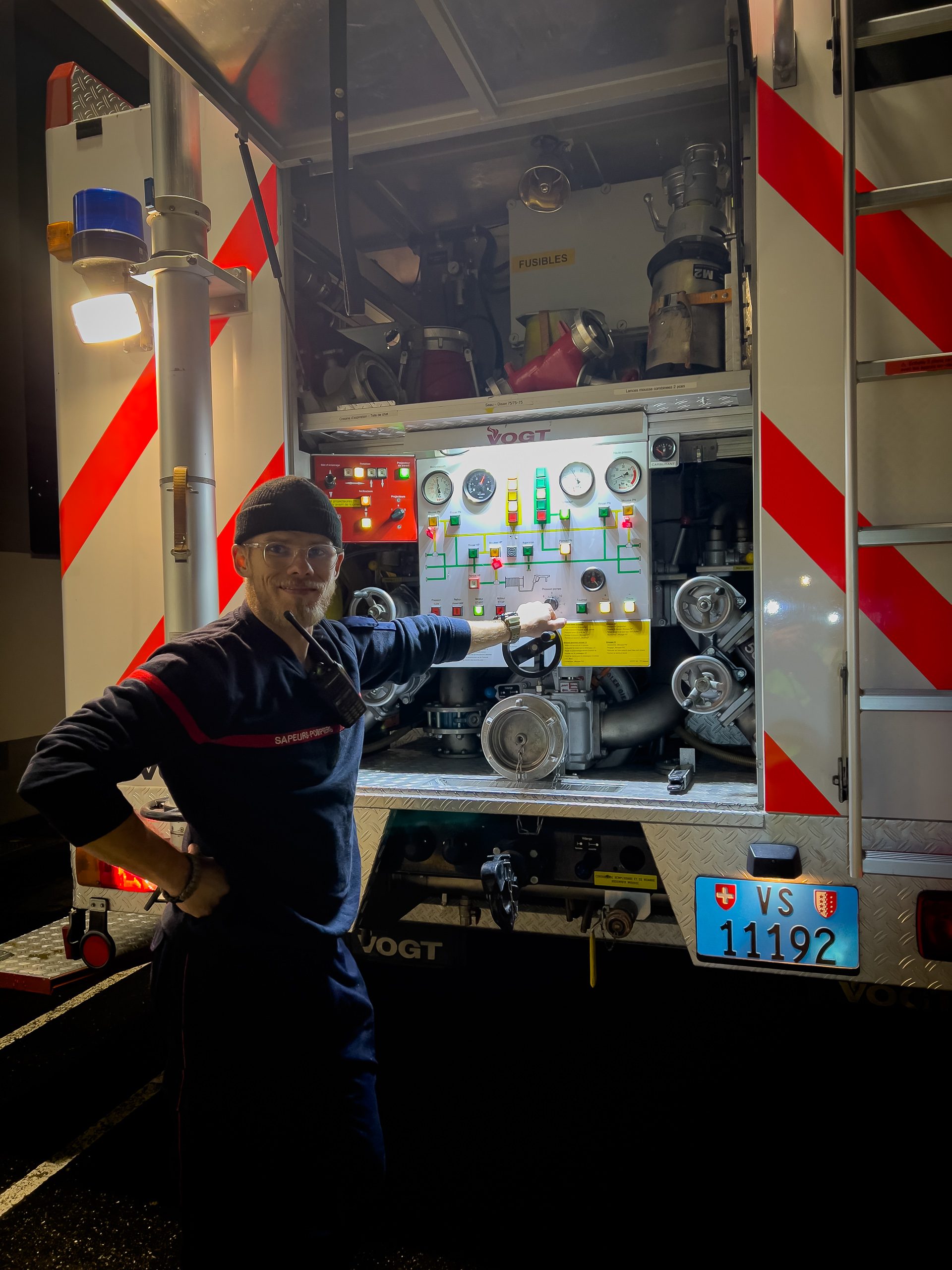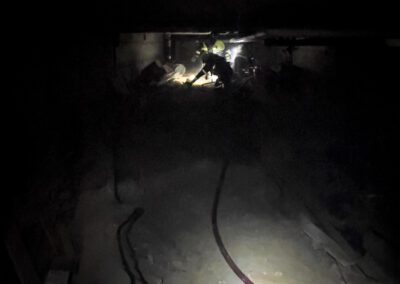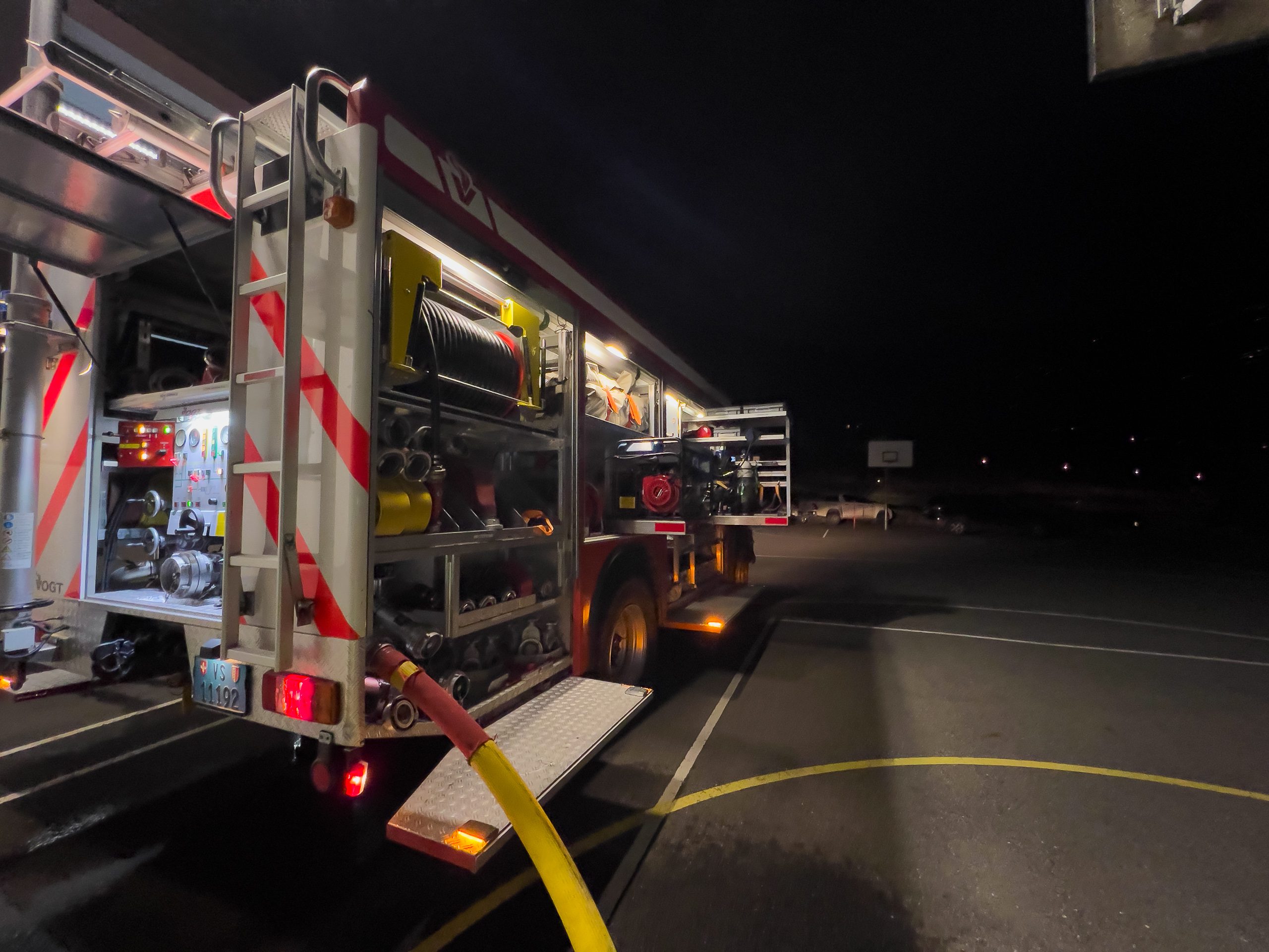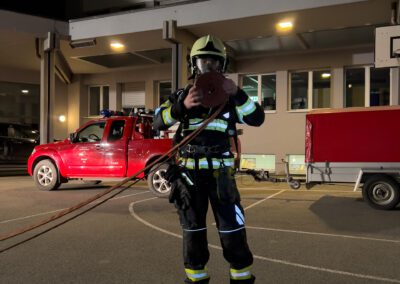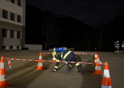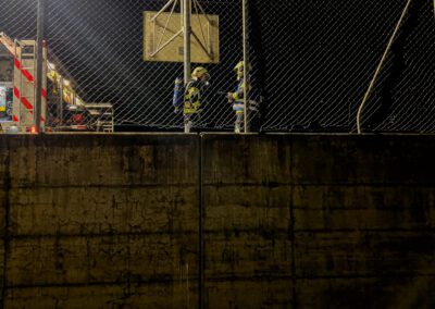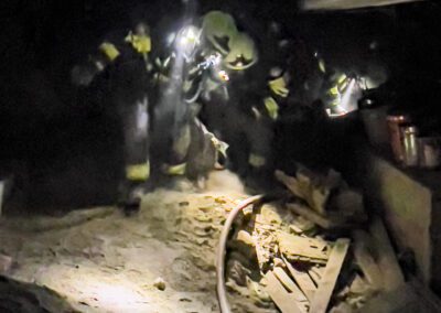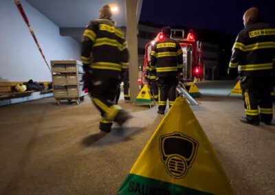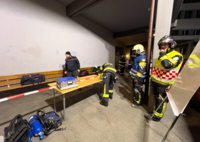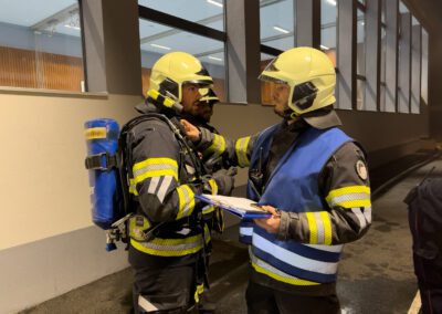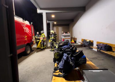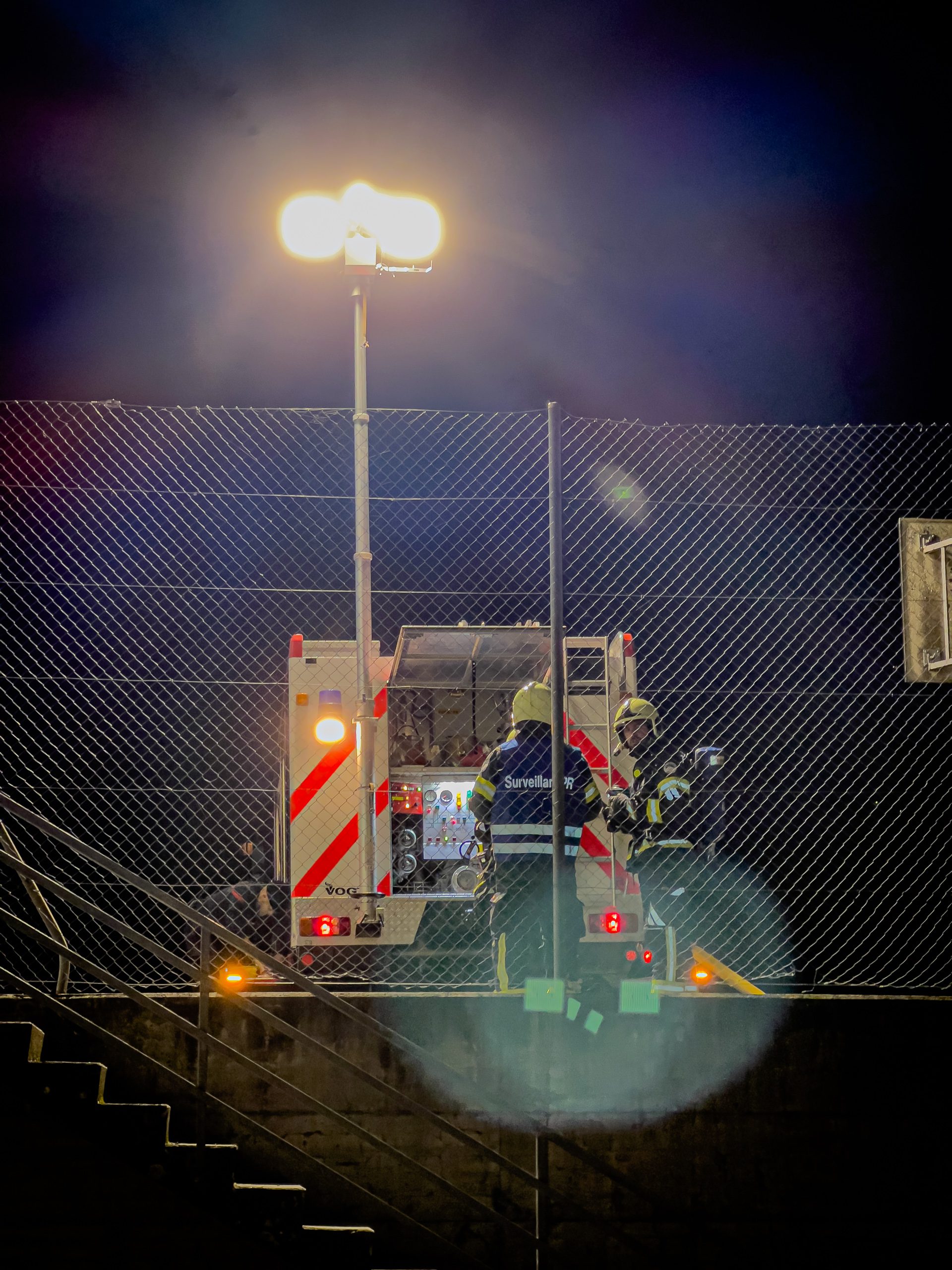 Séance de protection respiratoire réalisée au centre scolaire : reconnaissance et progression en binômes sur lignes guide, mise en place de repères, contrôle régulier des appareils respiratoires (ARI) et points de sécurité. Les équipes ont travaillé la communication radio avec le poste de conduite et la gestion des flux entre les binômes. Des mises en situation réalistes ont permis d’entraîner l’orientation, la recherche et la sortie sous faible visibilité, suivies d’un débriefing axé sécurité et bonnes pratiques et exercices de cardio et d'endurance.